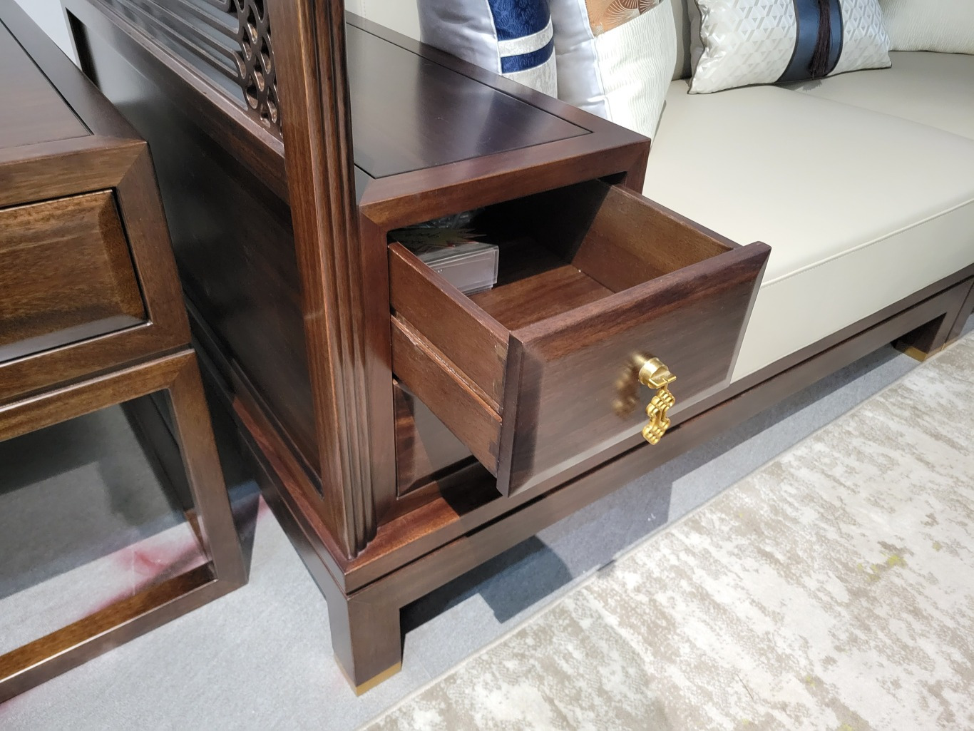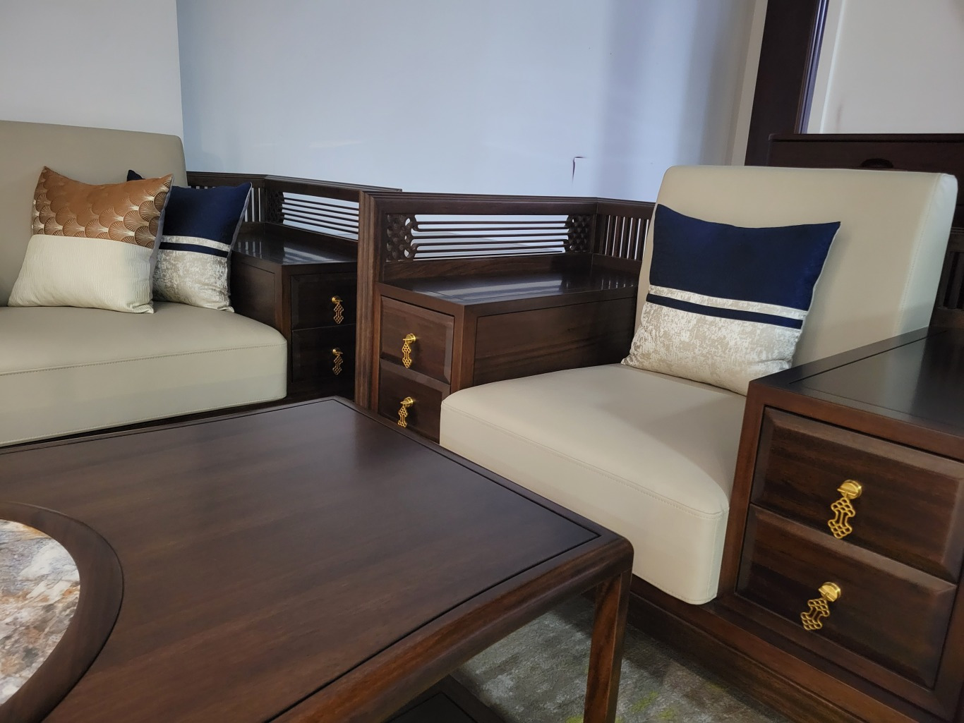 在追逐潮流与传统的交织中,新中式家具以其独特的魅力,逐渐成为现代家庭的首选。今天,我们就来聊聊新中式家具中一款**特色的沙发——带有扶手柜的沙发。这款沙发不仅实用,更是蕴含了丰富的文化内涵和美好寓意。