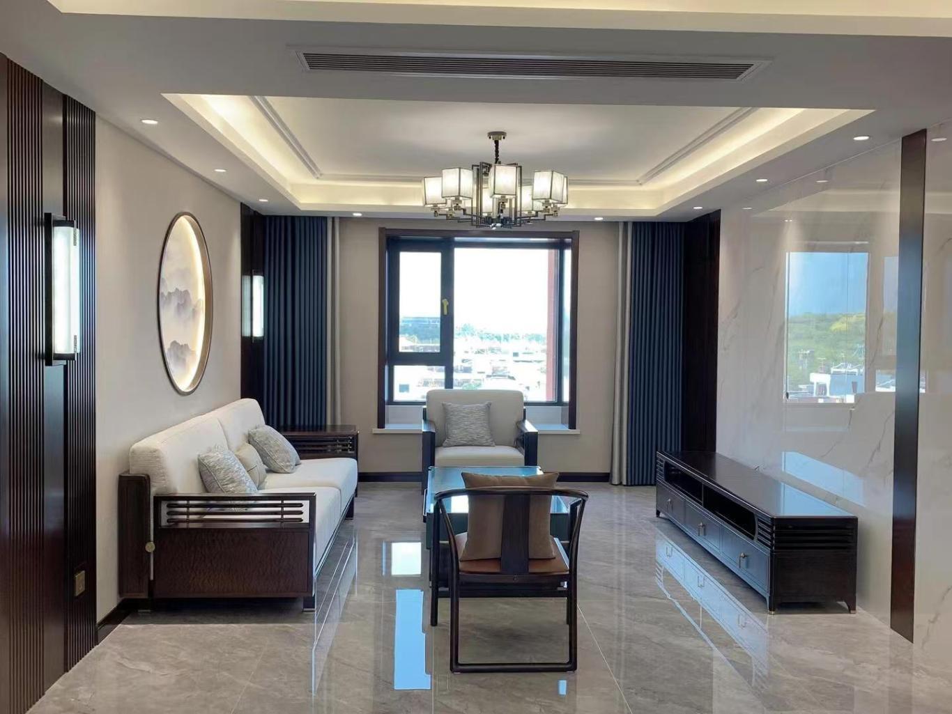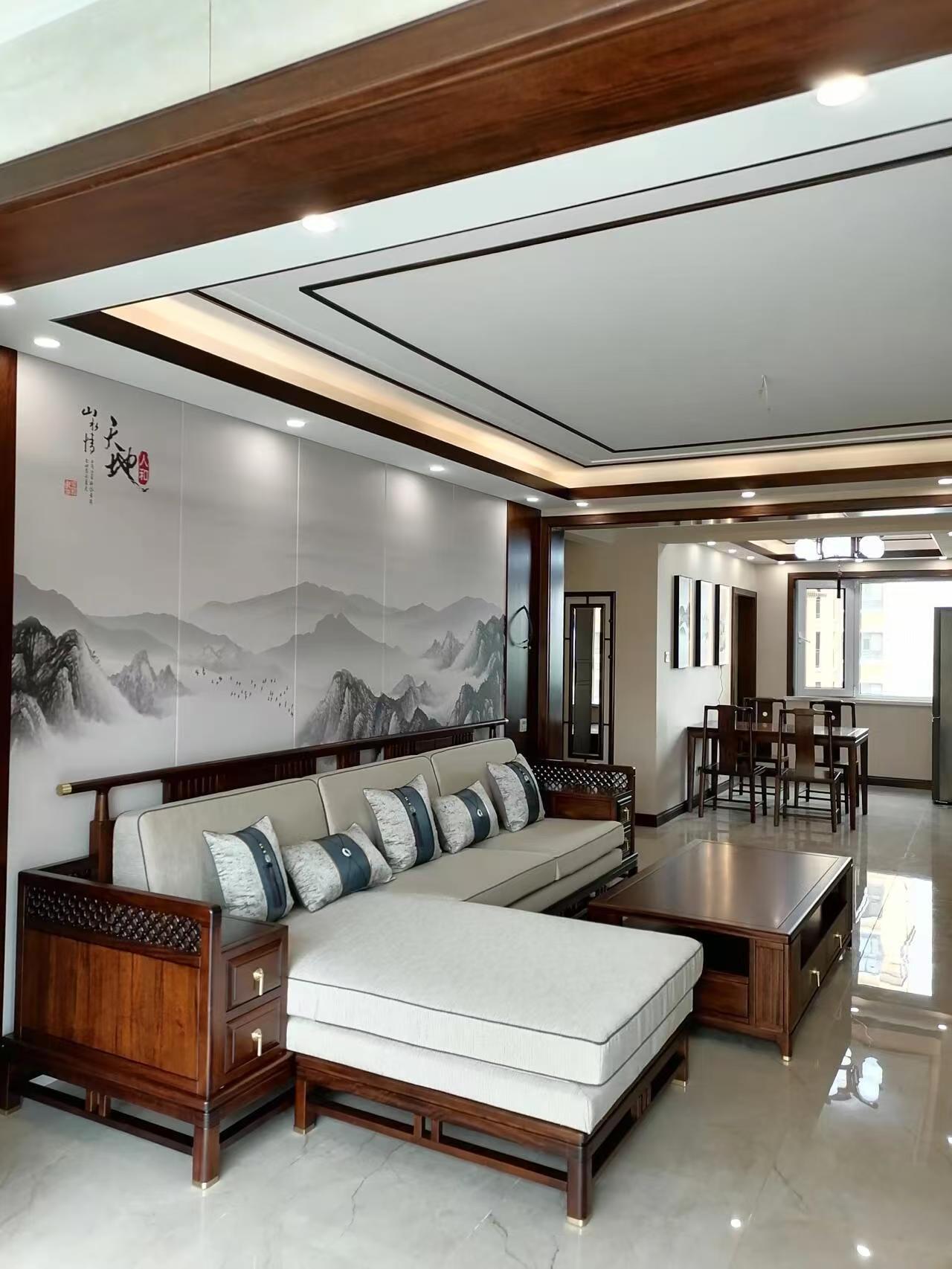 对于宽敞的大户型来说,U型布局无疑是**选择。确定主体沙发后,你可以自由组合其他家具,形成一个围合的布局。这种布局方式不仅增加了空间的融洽感,还能让家人间的交流更加亲密无间。新中式家具的线条流畅、造型简约,与U型布局完美契合,彰显大户型的气派与优雅。
